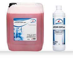 Apesin SDR san je sredstvo za dezinfekciju i čišćenje kupatila i sanitarnih područja. Brzo i pouzdano odstranjuje mineralna zaprljanja kao što su vodeni kamenac, krečne naslage sapuna i rđe, kao i organska zaprljanja kao što su masnoće i naslage belančevina. Baktericid, fungicid, virusinaktivirajući. Apesin SDR san u prostoru ostavlja ugodan cvetni miris. Nalazi se na listi DGHM/VAH. Deluje protiv virusa i uzročnika gastroenteritisa i na listi je virucida IHO. Na bazi mlečne kiseline. pH ca 0,5.