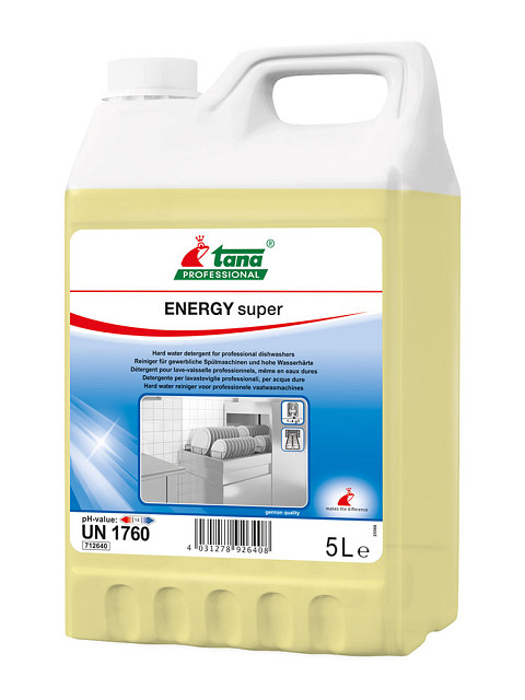 Sredstvo za mašinsko pranje sudova ENERGY SUPER je izuzetno efikasno i ekonomično koncentrovano sredstvo za pranje sudova u profesionalnoj mašini za pranje sudova. ENERGY SUPER sprečava taloženje kamenca, čini vodu mekom i daje odlične rezultate čak i u teškim uslovima pranja kao što je pranje sudova tvrdom vodom. Zahvaljujući svojim osobinama i visokoj efikasnosti deterdžent za sudove ENERGY SUPER produžava intervale održavanja mašine za pranje sudova, a posebno uklanjanja kamenca i drugih naslaga.