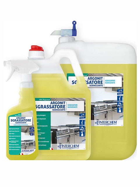Sredstvo za odmašćivanje ARGONIT SGRASSATORE IGIENIZZANTE je snažno brzodelujuće sredstvo za čišćenje i sanitizaciju svih perivih površina, sa kojih za nekoliko sekundi uklanja i najtvrdokornije masne nečistoće. Ne oštećuje površine i ne izaziva koroziju pa predstavlja idealan izbor za brzo čišćenje radnih ploča, kuhinjske opreme, radnih i trpezarijskih stolova, nameštaja, perivih zidova, prozorskih kapaka i roletni, radijatora, aspiratora, garnitura za sedenje, bicikala, motocikala i sl. Osim toga, odlično je sredstvo za uklanjanje fleka na tkaninama pre njihovog pranja u mašini za pranje veša. Sredstvo je alkalne pH vrednosti (ph 10), spremno je za upotrebu i opremljeno pumpicom za ravnomerno nanošenje. Pri upotrebi, naprskati sredstvo na površinu za čišćenje i sačekati nekoliko sekundi, a zatim obrisati vlažnom krpom ili sunđerom i obavezno isprati vodom. Za čišćenje podova koristiti vodom razblaženo sredstvo u koncentraciji od 5% do 10%.